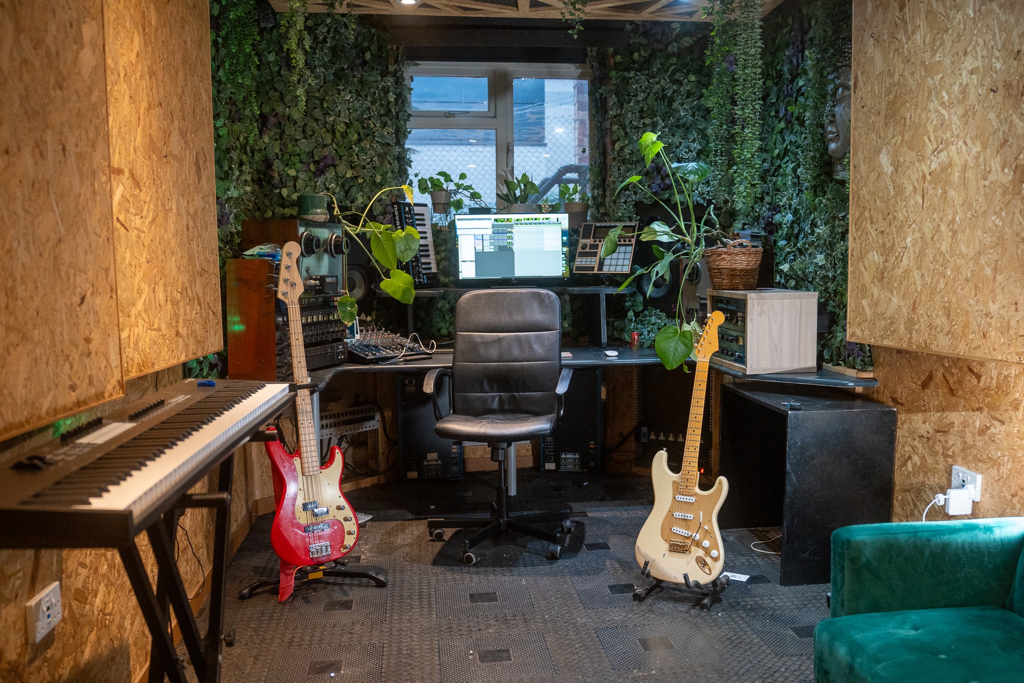 Hiring out this room permits 24 hour access to the premises, access to shared spaces such as our lounges, kitchens, toilets - as well as highly discounted rates for Studio A and Studio 4 - and any of our in stock backline equipment including numerous synths, guitars, basses, amplifiers, mics, outboard, and drum kits.