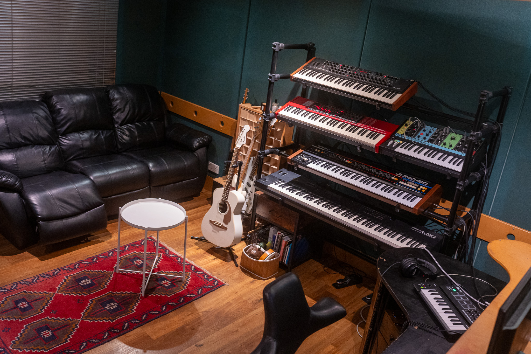 Hiring out this room permits 24 hour access to the premises, access to shared spaces such as our lounges, kitchens, toilets - as well as highly discounted rates for Studio A and Studio 4 - and any of our in stock backline equipment including numerous synths, guitars, basses, amplifiers, mics, outboard, and drum kits.