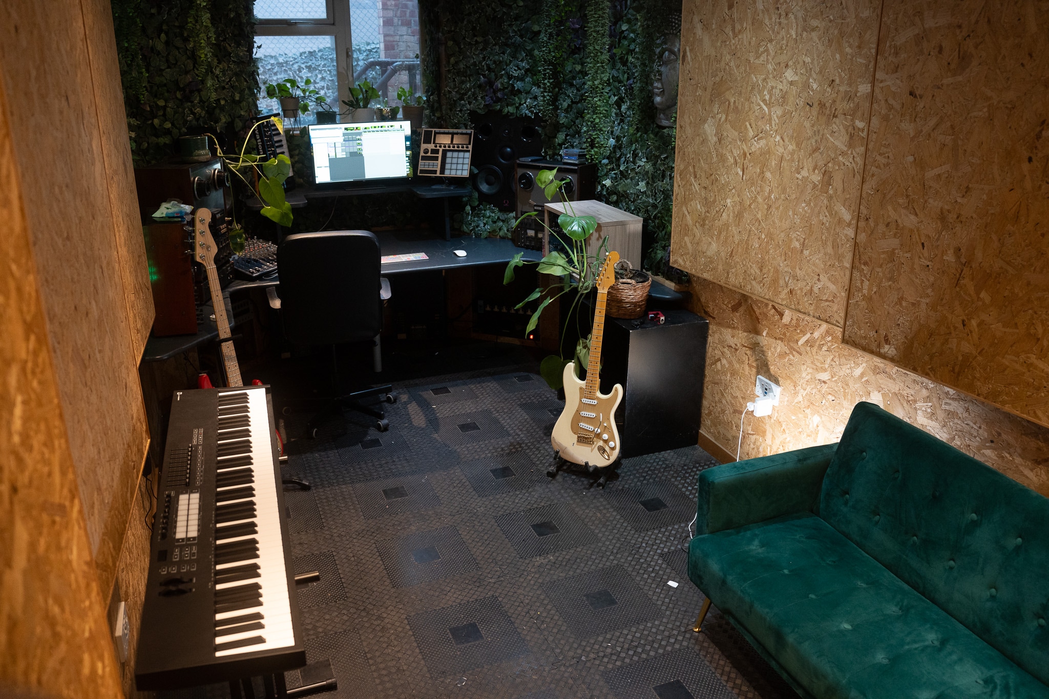 Hiring out this room permits 24 hour access to the premises, access to shared spaces such as our lounges, kitchens, toilets - as well as highly discounted rates for Studio A and Studio 4 - and any of our in stock backline equipment including numerous synths, guitars, basses, amplifiers, mics, outboard, and drum kits.